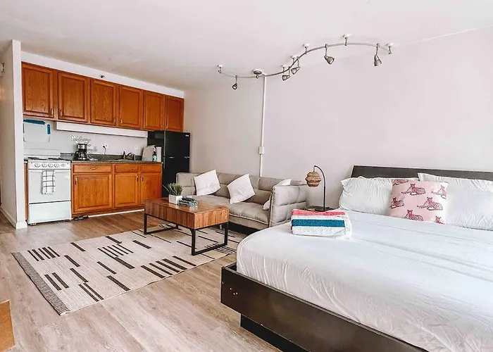 **Accommodations at Studio In Waikiki With Free Parking** provide guests with a delightful experience, featuring stylish rooms that blend contemporary aesthetics with home-like warmth. Each studio offers expansive windows that bathe the space in natural light and views of the bustling surroundings. Thoughtful amenities ensure a restful stay, while comfortable furnishings create an inviting ambiance perfect for unwinding after a day of exploration.